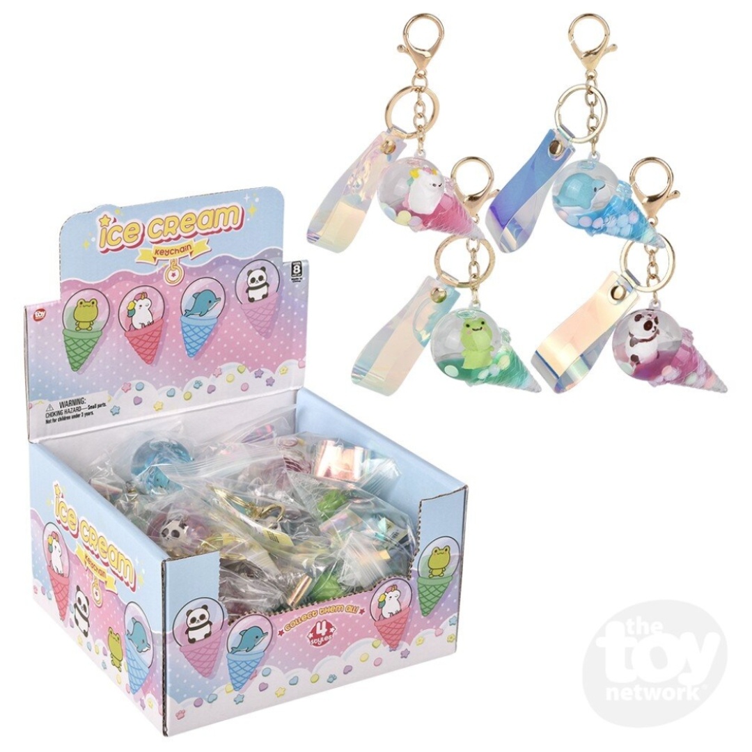 Sweeten your day with Kawaii Animal Ice Cream Clip-Ons — liquid-filled mini cones featuring tiny critters in dreamy pastel swirls.