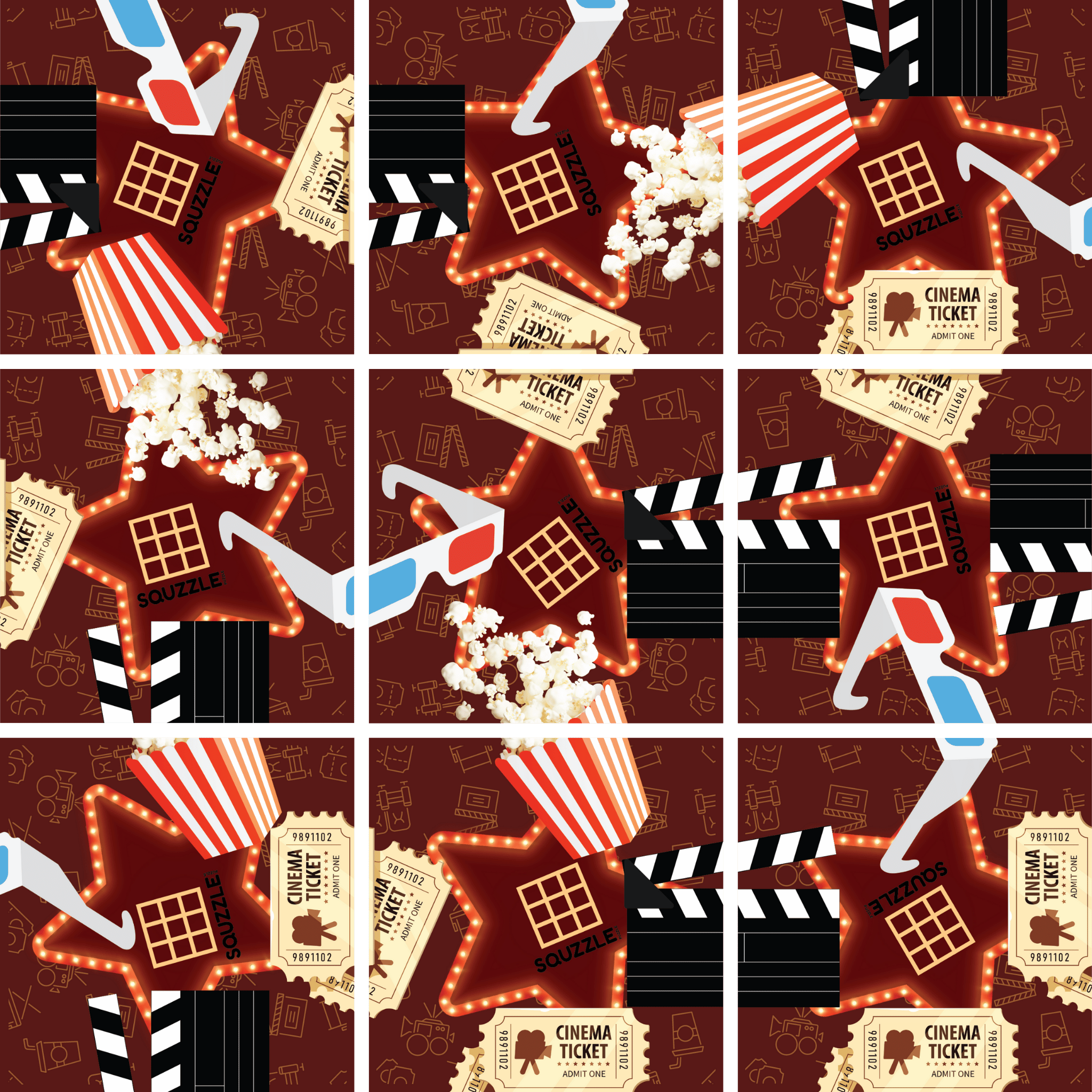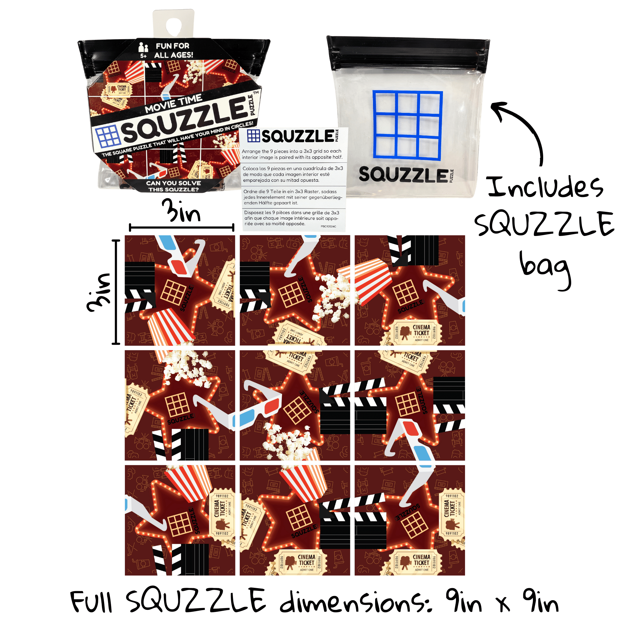 Dive into a world of entertainment with the Movie Time Squzzle Puzzle, a 9-piece brain teasing challenge designed by Fun Squared Games. Perfect for puzzle enthusiasts of all ages, it promises a vibrant and engaging experience.