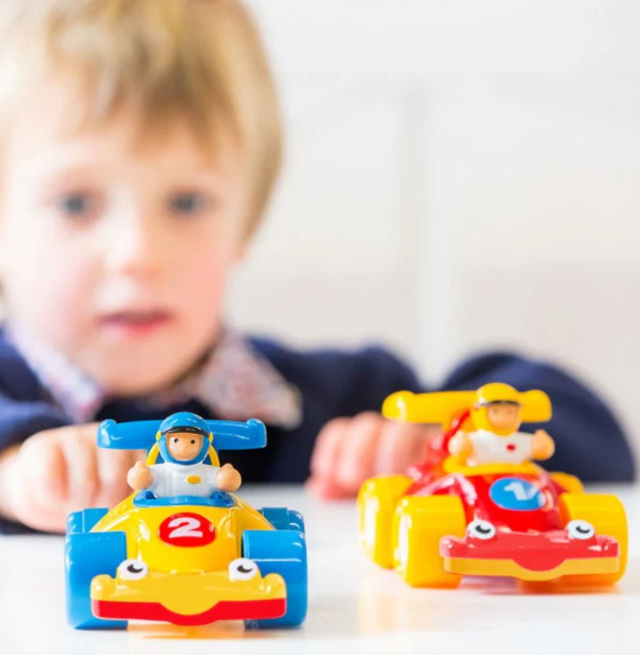 Experience the thrill of racing with the WOW Turbo Twins. These motorized racing cars are designed for high-speed fun, perfect for little racing enthusiasts. Simply push them along to engage their motorized engines and watch as they compete for first place.